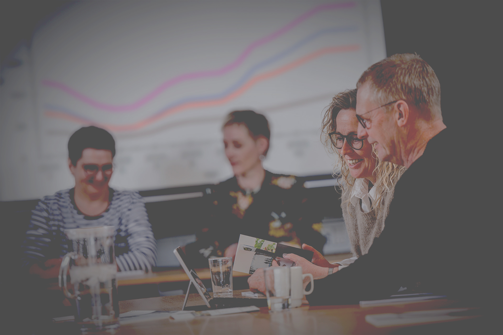I alle vores mødelokaler har vi en stor fladskærm. Det er en Clever-touch-skærm, som du kan bruge interaktivt.